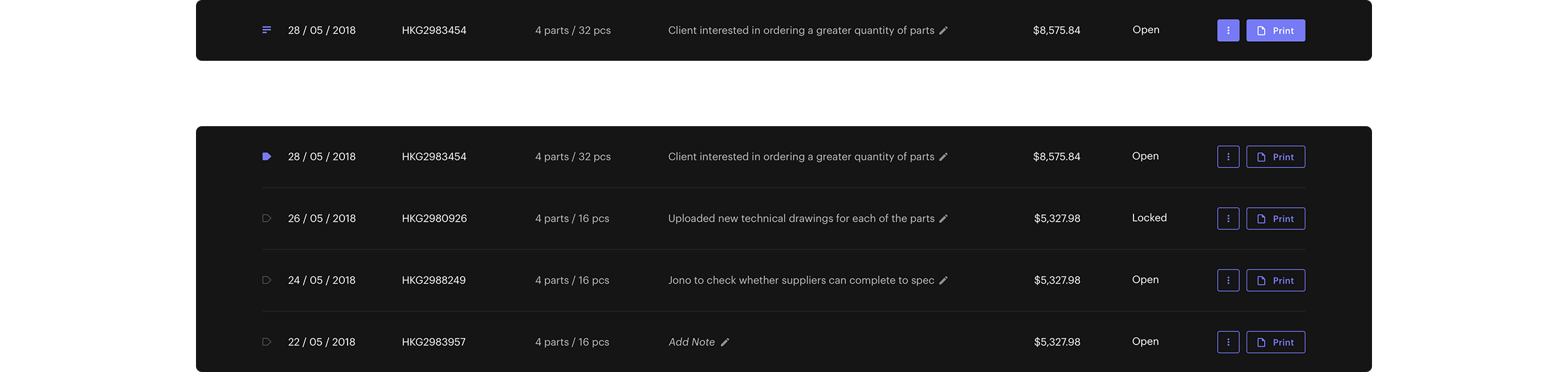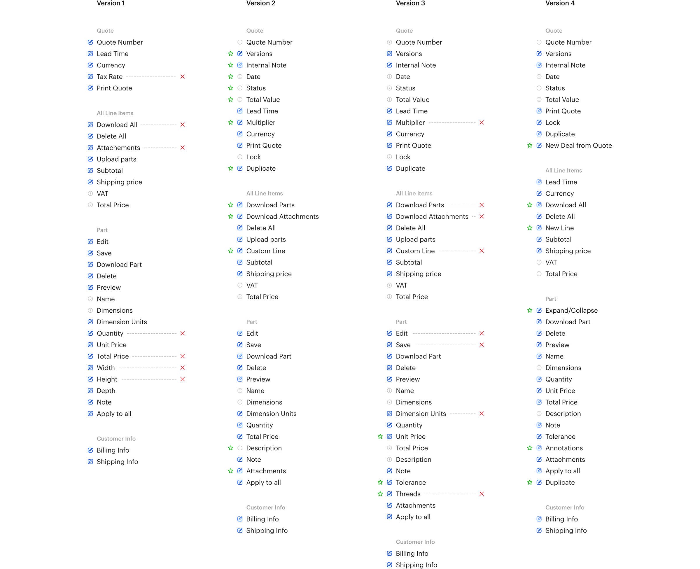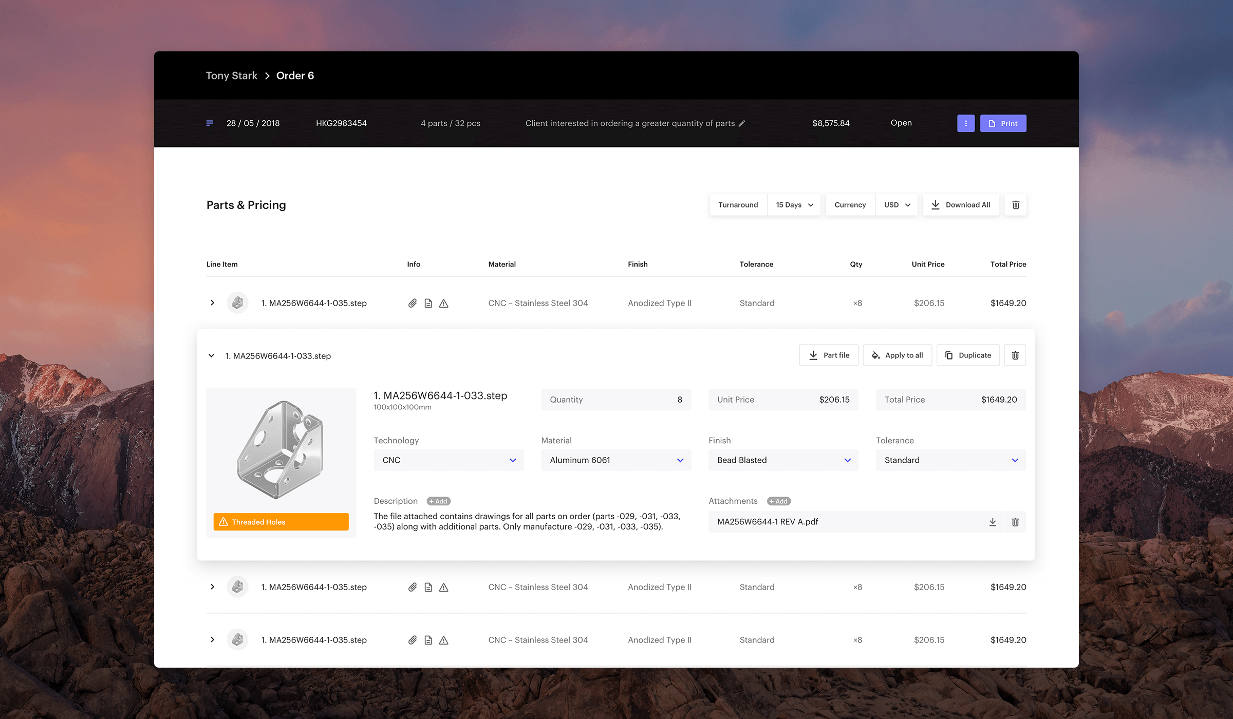In early 2018 we tested the viability of an on-demand CNC Machining platform, the proof of concept performed surprisingly well, motivating us to further develop the product. Throughout the test we documented the sales team’s experience with the platform and learned that the process of closing a deal was a lot less linear than we had expected, and they were spending a lot more time editing and managing different versions of quotes. Our goal was to dramatically reduce the amount of time spent by the sales team managing an order, by allowing them to quickly and confidently create many different permutations of a quote in a much more organized manner.